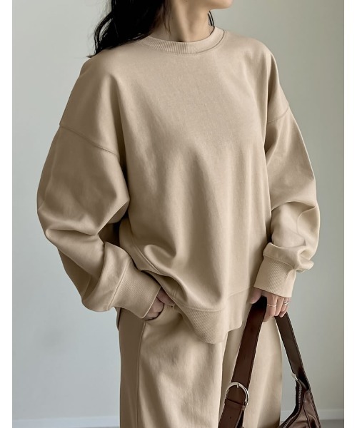シンプルながらも1枚でスタイリッシュにビッグシルエットながら、大きく見えすぎないよう、ステッチデザインの位置や絶妙なサイズ感にこだわったプルオーバー。ダンボール生地は着崩れにくく、きれいめな風合いに仕上がるのも大人に嬉しいポイント。ブルーとチャコールグレーは、ヴィンテージのような雰囲気のあるピグメント加工感をいれ、風合い豊かに仕上げました。ヒップが隠れるほどの丈感と丸みのあるデザインは、どんなボトムとも相性抜群。トップスをインしなくてもバランスよく着こなせる丈感です。同生地のダンボールカーブパンツ(商品番号:139163)とのセットアップも可能。シンプルながらも1枚でスタイリッシュに決まるトップスです。素材・着用感コットンブレンドで肌当たりがよく、程よいハリ感でシワになりにくいダンボール生地※セットアップ対応商品は、生産時期によって色味が上下で若干異なる場合がございます。■モデル着用写真は撮影環境により、多少実際のカラーと異なる場合がございます。お気に入りショップにご登録いただきますと、ショップニュースを、いち早くお届けいたします。
