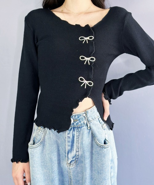 春の韓国コーデに、大活躍間違いなしのアイテム!シンプルな見た目ながらも、キラキラリボンが可愛い♪Sillyスタッフコメント韓国ガールになりたい女の子必見のアイテム!着回しもしやすく、シンプルで可愛い◎程よく身体にフィットしてくれるので、すっきりと着られてレディライクな雰囲気に♡Sillyのおすすめポイント・トレンドのバレエコア!・コンパクトなサイズ感でデコルテの見える首周り…♡・女の子らしいディテールがぎゅっと詰まった、コーデの主役になるトップス♪Sillyおすすめコーディネート・スカートやミニボトムで甘めな着こなしはもちろん!・デニムと合わせてカジュアルMIXなコーデにするのも♡■素材感優しい肌触りのポリエステルを使用しております。…………………透け感:なし厚さ:普通伸縮性:ありシワ:なりにくい推奨シーズン:10月~4月※関東の平均気温を目安に推奨シーズンを記載しております。※サンプルで撮影の為、仕様が変更になる可能性がございます。予めご了承ください。【お買い物をお楽しみ頂くちょっとしたポイント!】■商品のお気に入り登録をすると・・・完売カラーの再入荷通知、ラスト1点の通知、セールの通知を受け取ることが出来ます!■ブランドのお気に入り登録をすると・・・新商品や再入荷など、いち早くブランドのお得な情報を受け取ることが出来ます!是非、お気に入り登録とブランド登録をご活用ください!リボン リボントップス タイトトップス トップス タイト 韓国ファッション 韓国コーデ 韓国ガーリー ガーリー ガーリーコーデ ガーリーファッション 大人ガーリー 大人かわいい ワンホン ワンホンコーデ フレンチガーリー 春 春服 春コーデ 春ファッション 秋 秋服 秋コーデ 秋ファッション プチプラ トレンド 着回し 着回しアイテム デイリーコーデ デイリーアイテムインスタグラム WEAR TikTok 10代 20代