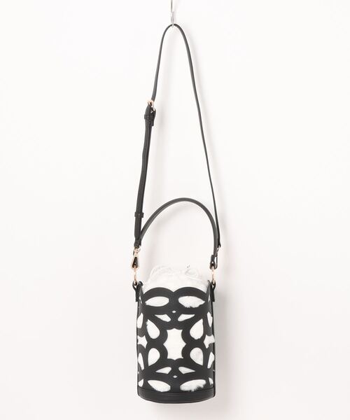 カットワークが施されたフェミニンなバケツバッグ。取り外しできる巾着袋付きで、中身を目隠ししながら持ち運びできます。巾着袋はふわふわの素材なので、秋冬スタイルのアクセントにぴったり。ショルダーは取り外しできる2way仕様です。※モデルの着用画像の場合、光の当たり具合により、実際の色味と異なって見えることがございます。色味は、商品単体の画像をご参照ください。