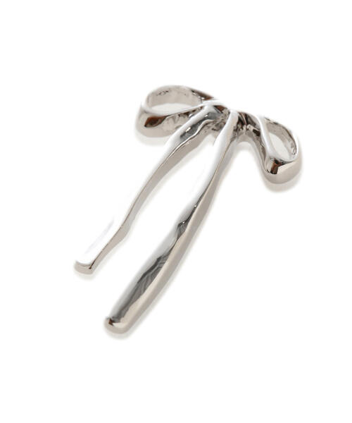 リボンモチーフが愛らしいピアス。艶めきがありながらもシルバーカラーなので甘くなり過ぎず、大人なムードで耳元のアクセントになってくれます。※モデルの着用画像の場合、光の当たり具合により、実際の色味と異なって見えることがございます。色味は、商品単体の画像をご参照ください。