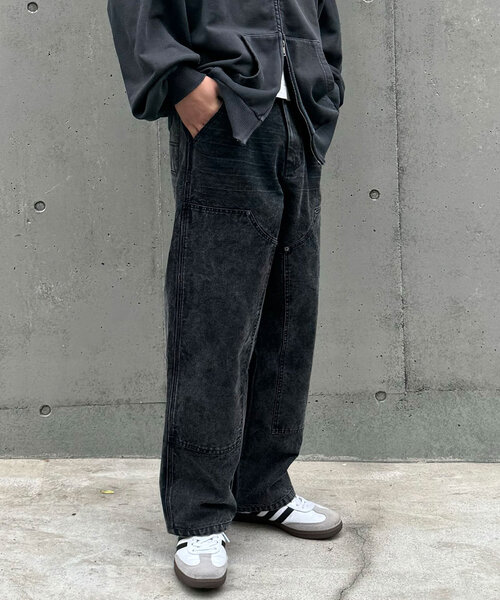 ヴィンテージライクなダブルニーパンツ ▼ポイント タフに使えるしっかりとしたダック生地。 古着っぽいフェード加工でヴィンテージ感あふれるデザイン。 幅広いコーディネートにハマる万能アイテム。 穿くだけでこなれたスタイルが簡単に完成。 ▼スタイリング セットアップはもちろん、スウェットやパーカーで、ストリートっぽくラフに合わせるのもおすすめです。 テーラードジャケットと合わせれば、こなれ感のあるカジュアルなスタイルも楽しんでいただけます。 --------------------------------------------------- 透け感:なし 伸縮性:なし 裏地:なし 光沢:なし --------------------------------------------------- 家庭洗濯:不可 タンブル乾燥:不可 アイロン:低温110 ℃まで※スチームなし クリーニング:ウエットクリーニング不可 --------------------------------------------------- ※着用、お取り扱いの際は、商品についている品質表示とアテンションタグを必ずご確認下さい。 ※画像の商品はサンプルです。実際の商品と仕様、加工、サイズが若干異なる場合がございます。 ※可能な限り実物に近いカラーにて掲載していますが、撮影環境やモニター環境などにより製品と画像のカラーがやや異なって見える場合もございます。予めご了承ください。 【お買いものをよりお楽しみいただく為に!!】 ▼商品のお気に入り登録(ハートマークをクリック) お気に入りアイテムの完売カラーの再入荷通知や、ラスト1点の通知、セールの通知も受け取ることができます。 ▼ブランドのお気に入り登録 新商品や再入荷、クーポン配布などのお得な情報を受け取ることができます。