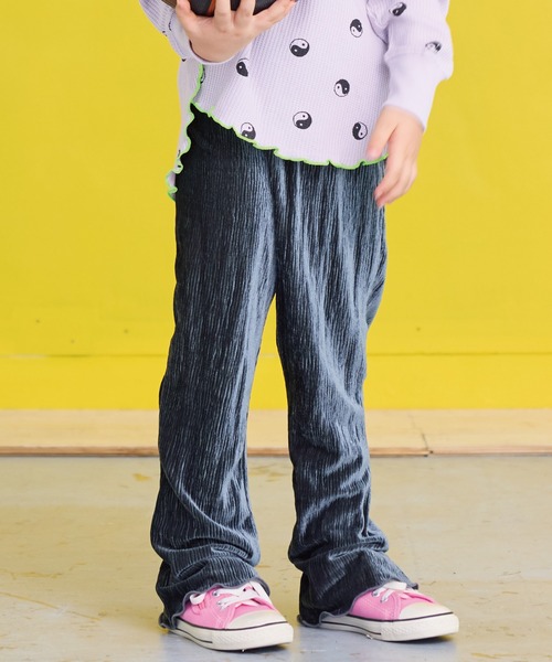 【CALMiA】 テロンと柔らかいニットコールのフレアパンツ ■デザイン コールテンのような表面感ですが、 テロンとしたニット素材でとっても柔らかい肌触り。 光沢感があり、見る角度によって色の出方が違って華やかな印象。 フレアシルエットで足長効果バツグン! ウエストはゴム仕様で、全体的に伸縮性もありラクチンな着心地。 バック右側1か所にポケット付き。 ■スタイリング トラックジャケットやスウェットなどとのスポーツMIXコーデもオススメ。 インパクトのある素材感なので、コーデがキマりやすい万能パンツです。 ■生地感 テロンとしたとっても柔らかい生地感。 コールテンのような縦畝の凸凹感がアクセントに。 伸縮性のあるニット素材で、着心地もストレスフリー。 ++++++++++++++++++++++++ 透け感:なし 伸縮性:横方向への伸縮性はあまりなし。縦にはとても良く伸びます。 生地の厚み:普通 裏地:なし ++++++++++++++++++++++++ ■モデル着用アイテム ・ワッフルメローカットソー:0010342033 ・カンガルーポケットトレーナー:0010442044 ・ジャージトラックジャケット:0000642009 ※モデルが着用している画像は、照明や日光などの撮影時の環境により実物と異なる色味になる場合がございます。 商品単体の平置き画像を実物に近いお色味になるよう努めておりますので、お色味のご確認は平置き画像をご参照くださいませ。 ※お使いのモニター環境によっても実物のお色味と異なって見える場合がございます。予めご理解の程よろしくお願いいたします。 ――― CALMiA/カルミア ――― マーキーズが提案するオンナノコ心をくすぐるディティールが特徴のブランド。 ガーリーカジュアルスタイルを提案します。