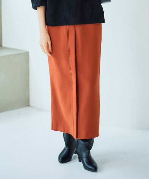 表地は上品な印象のジョーゼット素材、裏地はふんわりとあたたかな起毛を施した素材です。 ストレッチ性が高い素材のため、ナローシルエットながらストレスフリーに着られる1着です。 ●ポイント 着ぶくれすることなく防寒が叶う、冬場の万能アイテムです。 ●おすすめコーデ 同素材のトップス〈3048019403〉セットアップで着て頂くのもおすすめです。