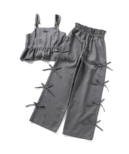 ALGY(アルジー)の「オールインワン風りぼんセットアップ」は、流行に敏感な女のコの日常を可愛く、甘く彩るデザインが人気!これ1枚でおしゃれ上級者になれちゃう!【取り扱い表示】40℃を上限に洗濯機で洗濯、デリケートアイテムモード、ネット使用、漂白剤を使用禁止、色物は同系の色と一緒に、洗濯後直ちに取出し、タンブル乾燥不可、日陰で吊り干し、低温でアイロン、商業ドライクリーニング不可【ご注意事項】この商品はユーズド感を出す為、製品洗い・製品染め・ブリーチ(脱色)・生地切れ・糸切れ等の2次加工を施しております。製品の特性上1枚ずつの加工となり、多少の歪み・シワ・色の出方・風合い・サイズ等1枚ごとに微妙に違います。尚、着用や洗濯を繰り返すことにより加工が徐々に進行し、あたり・ほつれなどが表れます。以上の点をご留意の上、他の製品では味わえない雰囲気をお楽しみ下さい。この商品は着用中の摩擦や洗濯により毛羽の乱れ、毛羽脱落、毛玉が生じることが有ります。できるだけ美しくご利用頂く為に次のことにご留意下さい。○毛玉は毛玉取り器またはハサミで丁寧にカットして下さい。○毛羽が他に付着した際はテープやブラシで除去して下さい。○他の製品とは洗わず、単独でお洗濯して下さい。○タンブル乾燥はお避け下さい。※商品により多少の誤差が生じる事がございます。あらかじめご了承下さい。※ご使用のパソコンやブラウザの環境により、実際の色とは多少異なる場合がございます。※モデル着用写真についてはイメージの為、実際の商品とカラーや仕様が異なる場合がございますので、商品画像をご覧ください。【 ALGY -アルジー- 】「 ALTERNATIVE + GIRLY = ALGY 」おしゃれをアップデートしたい女の子へ"毎日着たい"がきっと見つかるガーリーカジュアルブランド