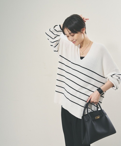 毎年即完売!3秒で抜け感演出、1枚できまる秀逸ニット2024AW! 毎年人気のシリーズがお客さまの要望に応えてアップデート! サッと着て簡単にシルエットがきまるのが最大の魅力。 抜け感Vネックはそのままに裾の両サイドにスリットを入れることにより、ウエストからヒップにかけてストンとまっすぐ落ちて細見え。 着るだけでほどよい抜け感とこなれ感がかなうシルエットはそのままに、こだわりの編地で表現。 秋らしいカラー展開に、ボトムスを選ばない着まわしやすさもおすすめポイントです。 ーーー 【素材】 ・適度な厚みの編地で体のラインをひろわないゆったり設計 ・縦ラインを感じさせる編地で細見え ・さらっとしたニット地で肌当たりもライト 【悩みに“効く”ポイント】 ・着用するだけで抜け感の出せる設計のVネック ・デコルテを美しく見せる ・首元すっきりで身幅はゆったり設計でノンストレス ・ボトムスを選ばない万能トップス