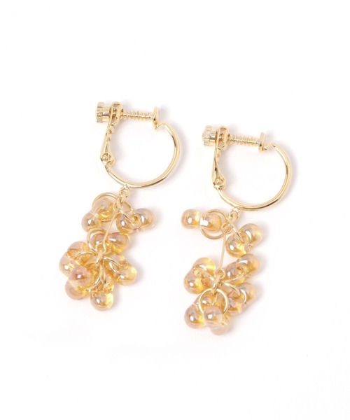 MADE IN JAPAN 日本製のガラスビーズイヤリング。 ブドウのようなつぶつぶしたデザインと艶感がポイント。 金具部分は華奢で線が細いものを使用しているので、上品に見えます。 軽いので、負担が軽く痛くなりにくいのも嬉しいポイント。 付けると揺れて目を惹きます。 【お買い物が便利になる機能がたくさん!】 ▼商品のお気に入り登録▼ 完売アイテムの再入荷通知、ラスト1点、またクーポンやお値下げ通知をお知らせします。 ▼ブランドのお気に入り登録▼ 新商品や再入荷のお知らせ等、いち早くブランドのお得な情報を受け取ることができます。 ぜひご登録ください。