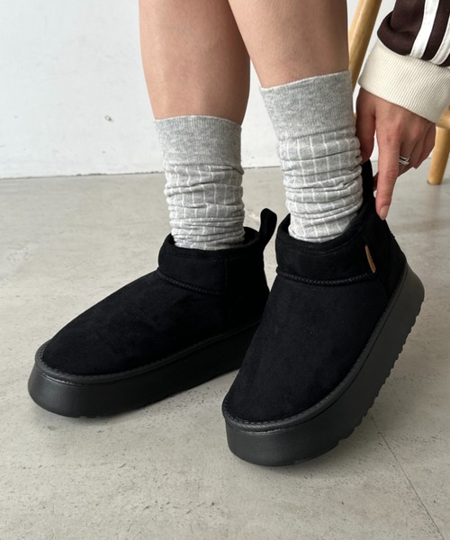 秋冬大活躍間違いなし! 厚底ショートムートンブーツが登場 ■Point ぽってりとしたフォルムが可愛らしいムートンブーツです! 厚底になっておりコーデにこなれ感をプラスしてくれます。 フラットな厚底で歩きやすく、疲れにくいのも嬉しいポイントです。 インソールのファーで履き心地も暖かさもバッチリです! ■Style ルーズソックスを合わせるとこなれ感が出ておすすめです。 ミニ丈ボトムス合わせで抜け感のあるコーデに! 綺麗めにもカジュアルにも合わせられる万能アイテムです。 ~サイズ表記について~ 商品に記載のサイズと実際のサイズ目安が下記となります。 予めご確認、ご了承をお願いいたします。 【23.5cm】商品記載サイズ:サイズ目安:23.0cm~23.5cm相当 【24.5cm】商品記載サイズ:サイズ目安:24.0cm~24.5cm相当 【CLEA/クレア】 毎日のシンプルスタイルを、さりげなくオシャレに。 casual fashion every day to you. . . シンプルだけど、どこか女性らしい。 さりげないのに、なんだかオシャレ。 上品さと抜け感のある、 大人カジュアルスタイルをご提案します。 ※ご覧のモニター・撮影環境により実際の商品と多少色味が異なって見える場合がございます。 予めご了承をお願いいたします。 【お買い物をよりお楽しみいただく為に!】 ▼商品のお気に入り登録ハートをクリック! 完売カラーの再入荷や、ラスト1点の通知、セールの際の通知を受ける事ができます。 ▼ブランドのお気に入り登録 新商品や再入荷など、いち早くブランドのお得な情報を受け取ることができます。