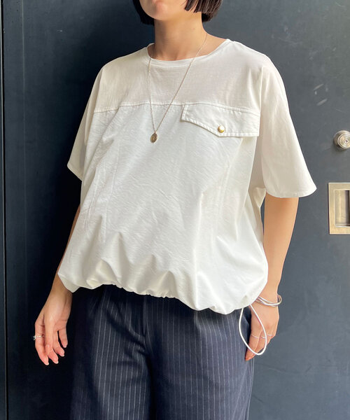 -商品ポイント- ・秋冬大人気だったカットソーがリニューアルして再登場! ・デザイン性の高い、布帛切替のカットソー。 ・サラッとした春夏素材にリニューアルし、清涼感ある一枚。 ・たっぷりとギャザーが施されたバックスタイルデザインもポイント。 ・裾のドローコードでシルエットを変化させることができます◎ ・上品なボトムスと合わせてキレイめカジュアルなスタイリングもおすすめです。 ーマテリアルー ■透け感:なし ■裏地:なし ■伸縮性:ややあり ■光沢感:なし —洗濯方法ー 洗濯機洗い(弱) ー注意事項ー ・画像の商品はサンプルです。 実際の商品と仕様、加工が若干異なる場合があります。 ・サイズ表記はあくまで目安となります。 __________________________________ ※取り扱いについては、商品についている品質表示でご確認ください。 ※照明の関係により、実際よりも色味が違って見える場合があります。 またパソコン・スマートフォンなどの環境により、若干製品と画像のカラーが異なる場合もございます。 予めご了承ください。 ※詳細画像の色合いをご参照ください。予めご了承ください。