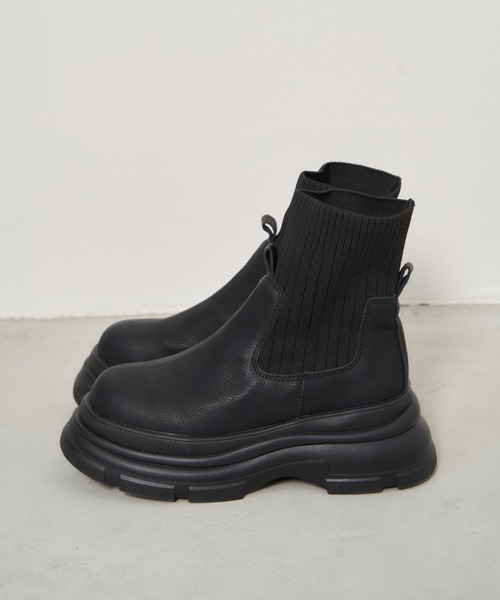 2024 Autumn Winter Collection 履くだけで一気に今年らしい印象◎ 履き口がリブソックスタイプのブーツが登場 ■point 足首をホールドするリブ部分がソックスと合わせているような レイヤードデザインのサイドゴアブーツ。 ソックス部分が足首にフィットしてくれるので暖かく、シルエットもすっきりと見せてくれます。 シンプルなデザインのブーツは幅広いコーディネートにマッチする1足です◎ ボリュームソール/ソックスブーツ/テイストレス --------------------------------------------------- ▶商品のお気に入り登録 完売カラーの再入荷通知やラスト1点の通知など お得なプライスダウンの情報も受け取ることができます。 ぜひご登録ください◎ ▶ブランドのお気に入り登録 新商品や再入荷など、ブランドの最新情報を いち早くお知らせします! ぜひご登録ください◎ --------------------------------------------------- ※撮影環境の光や角度により、実物と色味が異なる場合がございます。また表示のサイズ感も実物とは若干異なる場合もございますので、予めご了承ください。 ※着用、お取り扱いの際は、商品に付いている品質表示を必ずご確認ください。 ※生産時期により色・素材・サイズ感など多少異なる場合がございます。予めご了承ください。