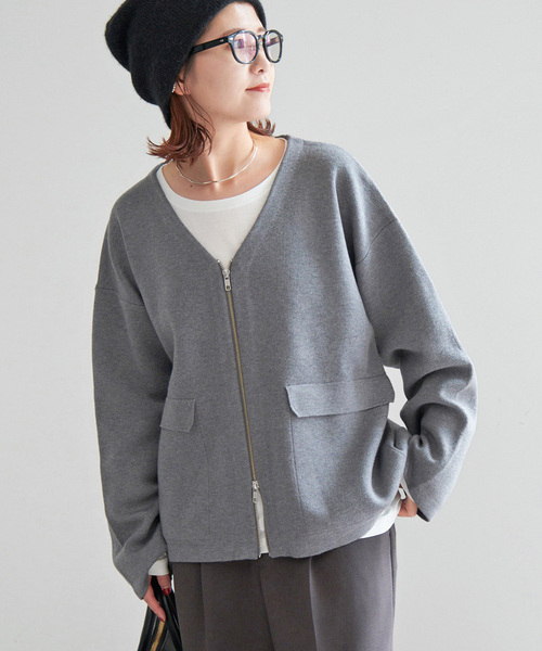 コーデのアクセントを添えるダブルジップカーディガン。 ダブルジャガード編みでお作りしたジャケットライクアイテム。 ポリエステルをプレーティングする事によりボリューム感のある編地が特徴です。 お好みの位置でファスナーを調整し、インナーを覗かせたりプルオーバーのような着こなしなど、アレンジが楽しめます。 カジュアルパンツやスラックスなど、さまざまなボトムと好相性です。 ********************** 透け感:なし 裏地:なし 伸縮性:あり 光沢感:なし 生地の厚さ:普通 ********************** 【スタッフ着用コメント】 《スタッフS》 20代後半/身長:156cm/普通/普段サイズ:S/着用サイズ:フリー サイズ感:ゆったり着られるボックスシルエット。 アームホールも大きく厚手のトップスも着こめるサイズ感です。 素材感:アウターとしても着られそうな肉感のある素材。 着心地:深めのVネックが女性らしく、デザインもシンプルできれい目にも着られそう◎ ********************* ※取り扱いについては、商品についている品質表示でご確認ください。 ※こちらの商品は、Spick & Spanでの取り扱いになります。 直接店舗へお問い合わせの際は Spick & Span店舗へお願い致します。 ※照明の関係により、実際よりも色味が違って見える場合があります。 またパソコン・スマートフォンなどの環境により、若干製品と画像のカラーが異なる場合もございます。 ※商品の色味は、商品アップ画像をご参照ください。 本体:ドライクリーニング