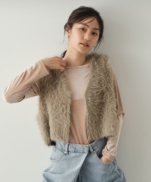トレンド感たっぷり!毛足感のあるシャギーニットのショートベスト 【デザイン】 ・シャギーの毛足感がかわいいニットベスト。 ・ショート丈で設定し、コンパクトなバランス感も◎ ・Vネックなので、Tシャツやブラウス、ワンピースと様々なスタイリングにも合わせ易くなっています。 ・前合わせ部分には、スプリングフォック付き。 【素材】 ・毛足感のあるシャギーニット素材を使用 ・裏面にはさらっとしたポリエステルニットを使用しているので、インナー部分にはシャギーが付かず、着合わせしやすくなってます。 ・マシンウオッシャブルでご自宅でのお洗濯も可能 ------------------ 【C(シー) OPAQUE.CLIP】 「PLAYFUL FEMININE」をキーワードに、天然素材と美しくポジティブなカラー、ワクワクするようなディティールや、 ミックス感のあるスタイルなどファッションの楽しさを詰め込んだ新レーベルです ※照明の関係により、実際よりも色味が違って見える場合があります。また、パソコン・スマートフォンなどの環境により、若干製品と画像のカラーが異なる場合もございます。 モデル情報:身長167cm B84 W62 H88 着用サイズ:38(M) 店舗へのお問い合わせ商品番号:637-39018 ●製品寸法: 38(M):着丈45cm B104cm 肩幅35cm 40(L):着丈47cm B106cm 肩幅35cm 備考: