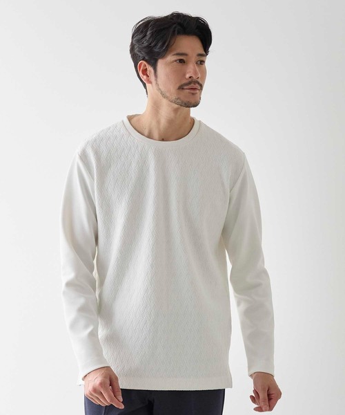 ブランドの象徴的な定番切り替えアイテムから新パターンが登場☆前身頃にフクレジャガードバスケット柄とポンチ素材を合わせた異素材ドッキングTee。単色ながら素材のさり気ない陰影のほど良い主張があり、1枚での着用はもちろん、ハオリものとのコーディネートのアクセントとしても活躍する便利アイテム。【UNION STATION/ ユニオンステーション】「さりげない上品さ」をキーワードに大人に向けた、素材感と着心地にこだわったアイテムを展開。肩ひじを張らずに自分に合ったおしゃれを楽しめる、きれいめスタイルを提案します。私たちは服を通してみなさまの心が明るくなったりワクワクしたり、ささやかな高揚感を感じていただけるような”おしゃれ着”をお届けします。※屋外での撮影画像は光の加減で、実際の商品より明るく見える場合が御座います。商品の色味は生地アップ・スタジオ撮影の画像をご参考下さい。※画像の商品はサンプルとなりますので実際の商品と仕様、加工、サイズが若干異なる場合がございます。※ご注文いただいた予約商品のお届け時期の確認は、注文履歴ページより行えます。