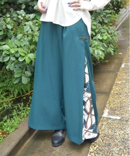 【商品紹介】サイドのスカーフ柄が目を惹くワイドパンツです。後ろゴム仕様で履きやすさ◎。【デザイン】バラや香水瓶、シーリングスタンプなどのフェミニンなアンティークモチーフチャームや連パールなどを入れ込んだ、オリジナルデザインのスカーフ柄です。動くとちらっと覗く両サイドのスカーフ柄がエレガントな印象に。人気のワイドシルエットで動きやすさも抜群の1着です。【コーディネート】カジュアルなトップスにも、上品なブラウスに、トップスを選ばず幅広く合わせられてコーディネートがキレイめに仕上がります。【素材】裏地なし 透け感なし 伸縮性なし▽ axes femme * アクシーズファム【Concept】axes femmeのお洋服であなたのライフスタイルにほんの少しだけ彩る花が咲きますように。ブランドを通して、彩る花たちが、人と人、お客様や作り手たちの想いが世界中に繋がっていきますように。ベル・エポック(フランスの古き良き時代)にパリジェンヌたちが愛したファッションや文化にルーツをおき、独自のフェミニンスタイルを楽しむブランド**********************.。.:? お気に入り登録のおすすめ ?:.。.∇気になるアイテムを登録∇ハートをクリックしてお気に入りに登録すると完売カラーの再入荷やラスト1点の通知、セールの通知を受けとることができます。∇ブランドを登録∇新商品や再入荷、セール通知など、いち早くブランドの情報を受けとることができます。是非ご利用頂き、お買い物をお楽しみ下さい。.。.:? 商品について ?:.。.・サイト上のカラー名と、お届け商品に記載されているカラー名が異なる場合がございます。・商品の色味は、撮影場所や光のあたり具合、お客様のお使いのPCのモニター環境などにより色味が違って見える場合がございます。予めご了承の上ご注文下さい。.。.:? 返品・キャンセルについて ?:.。.・着用、洗濯後の返品は致かねます。・商品到着後、着用前に商品を確認して頂きますようお願い致します。