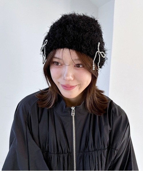 ーーー 【デザイン】 ふわもこのニットキャップにリボンモチーフがアクセントになった トレンドライクなアイテム。 甘さもありつつ、ベーシックなカラーなので 幅広いスタイリングにおすすめです。 ーーー ※素材の特性上、強く引っ張ると毛が抜ける場合がございます。 ※屋外の光や照明の当たり具合で、実際の商品と画像の色味に違いが発生する場合がございます。