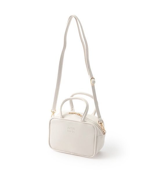 レザー調の生地で大人っぽい雰囲気を演出したバッグです。 エンボス加工で立体的なロゴをあしらい、シンプルながら上品にまとめました。 ショルダーのストラップはつけ外しができ、ハンドバッグとして使えるのもうれしいポイント。 ダブルジップ仕様で開閉がしやすいため、小物の出し入れにも便利です。 内側にお名前を記入できるタグつき。