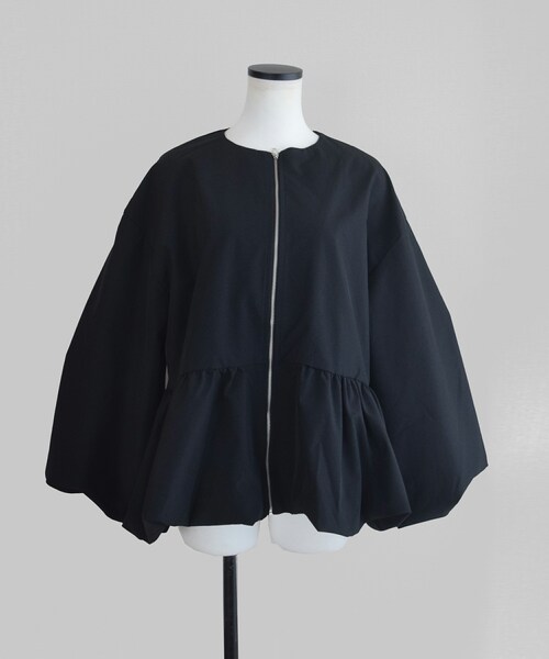 ◆アイテム詳細◆ 羽織るだけで完成される立体的なフォルムのバルーンペプラムブルゾン。 ふわっとボリュームのあるバルーン袖と、身頃はペプラムデザインがポイントのアウターです。ペプラムの切替えは腰回りをカバーしてくれ、スタイルアップも狙えます。 マットで柔らかく程よいハリ感が特徴の生地で、ブルゾンは立体感がありモダンな印象に。 後ろが少し長めなのでお尻にかかる着丈なのも嬉しいポイントです!