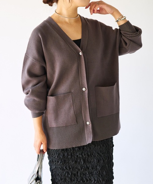 もちもちした肌触りで着心地抜群商品ポイント・今季1枚は買い足したいカーディガン・ふくらみのある素材を使用することで、 重たくなり過ぎず、 あわせるものに迷わない万能なVネックに・程よくゆとりのあるサイズ感で、着心地も抜群・おおきめポケットは実用的おすすめコーディネートオンオフ問わずに活躍するアイテムロゴTの上から羽織っても良し、ストライプシャツの上から羽織っても良し!おすすめスタイリングアイテムライン入り裏毛ナロースカートポコポコタイトスカートシアーベロアイージーパンツストレッチセミワイドパンツ素材レーヨン50%ポリエステル30%ナイロン20%洗濯方法:洗濯洗い(弱)透け感:なし裏地:なし伸縮性:あり生地の厚さ:普通光沢:なしポケット:あり【スタッフ着用コメント】《RINO》身長:148cm/着用サイズ:F体型:普通/骨格:ストレート/パーソナルカラー :ブルベ冬さらさらの表面がポイントのカーディガン♡おおきめで目を惹くボタンがアクセントに!《AYAKA》身長:156cm/着用サイズ:F体型:ぽっちゃり/骨格:ストレート/パーソナルカラー :イエベ秋大きめなポケットが実用的で、形もかわいいです♡生地も暑すぎず薄すぎずなので、今の季節にピッタリ!《YUKA》身長:162cm/着用サイズ:F体型:ぽっちゃり/骨格:ストレート/パーソナルカラー :イエベ秋シンプルなので羽織りでも単品使いでも色々着まわせます♪ゆったり柔らかな着心地で肌寒い時期にヘビロテ間違いなしです!骨格タイプストレート:全体的に立体型で筋肉質。ひざ下はすらっと細め。ボディラインにメリハリがある。ウェーブ:上半身が薄く、華奢。緩やかな曲線のボディライン。下半身に重心があり女性らしい体型。ナチュラル:筋肉や脂肪があまり感じられない体型。腰の位置が高く骨や関節が目立ちやすい。--------------------------------------------------------------------------------【注意点】※画像の商品は光の照射や角度、お使いのモニター環境により、 実物と色味が異なる場合がございます。あらかじめご了承下さいませ。--------------------------------------------------------------------------------【『♡』をクリックでお気に入り登録】・ラスト1点や再入荷の通知が届きます。--------------------------------------------------------------------------------