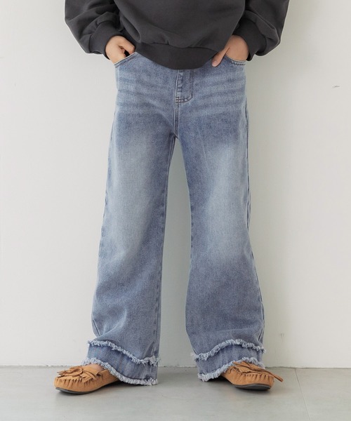 裾のダブルフリンジがポイントのデニムパンツ。ゆるっとしたシルエットで生地感も柔らかく、コーデアイテムを選ばない1本です。伸縮性:ウエストあり透け感:なし裏地:なしポケット:あり生地感:柔らかいデニム生地注意点:製品加工の特性上、裾のフリンジの風合いが1点毎に異なります。素材の特性上、色落ちしやすいのでご注意下さい。デザイン上、意図的に端を断ち切り状態にしています。お洗濯方法によっては縮みや色あせの可能性あり。乾燥機等のご使用はお控え下さい。▼生地や素材の性質により2cm前後サイズ誤差が出る場合がございます。▼モデル着用写真は撮影環境により、多少実際のカラーと異なる場合がございます。▼色落ちの恐れがありますので、他のものと分けて洗って下さい。▼当商品は機械による生産の過程上、『生地を織る際の糸の継ぎ目』や多少の『ほつれ』、繊維の『混紡』、形やサイズに多少の『誤差』が生じる場合がございます。