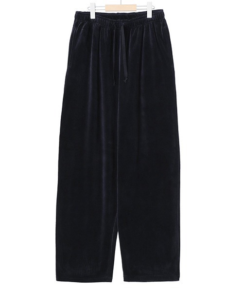 【デザイン】 ・アクティブな印象のトラックパンツをベロア素材で上品な雰囲気に仕上げた一着 ・セットアップでの着用はもちろん、ジャージ感覚でデイリーに着まわしやすいアイテム ・綿100%で伸縮性にも優れており、着心地の良さもポイント ・こちらのアイテムは「M24C-05CS01C / TRACK JACKET」と同生地になっており、セットアップでの着用も可能 【素材】 ・オーガニックコットン100%のベロア素材を使用 ・化繊が使われることが多いベロア素材を、オーガニックコットン(長綿)100%で仕上げた高級感のある生地 【シルエット・サイズ】 ・繭のようなシルエットが特徴的のコクーンフィットをワイドテーパードシルエットにアレンジ
