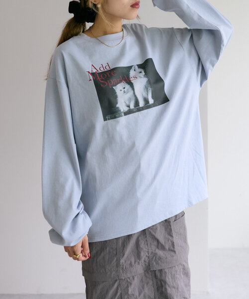 ネコちゃんプリントが目を引くキレイめロンT ▼デザイン ・ゆるっと着れる程よくゆとりのあるサイズ感 ・ネコのプリントに英字プリントで上品な印象に仕上げました ・ロンTとプリントデザインがバランス良く着まわせる1枚です ▼コーディネート ・スラックスに合わせて大人カジュアルな着こなしがおすすめ◎ ・カジュアルになりすぎたくない方はスカートに合わせて甘さをプラスするとレディーライクに着こなせます ※洗濯、取り扱い 洗濯:40度限度 手洗い アイロン:低温110℃まで スチームなし(あて布使用) タンブル乾燥:不可 -------------------- 裏地:なし 透け感:オフホワイト 厚さ:普通 伸縮性:ややあり -------------------- 【商品のお気に入り登録】 お気に入りアイテムの値下げ・再入荷・在庫1点などの通知を受け取ることができます。 【ブランドのお気に入り登録】 新商品や再入荷、セール、クーポン配布などお得な情報を受け取ることができます。 ※サイト上のカラー名と、お届け商品に記載されているカラー名が異なる場合がございます。 ※商品の色味は、撮影場所や光のあたり具合などにより色味が違って見える場合が御座います。また、お客様のお使いのPCのモニター環境などにより色味が違って見える場合が御座います。予めご了承の上ご注文下さい。 ※ご注文いただいた予約商品のお届け時期の確認は、注文履歴ページより行えます。