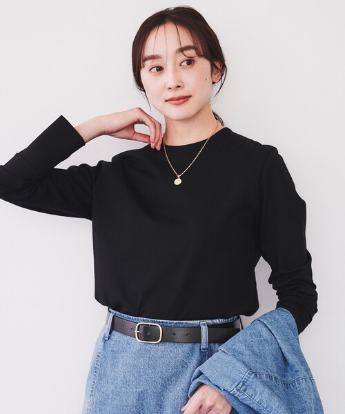 【デザイン】 程よいゆとりのあるシンプル&ベーシックなロングスリーブTシャツは、 肌に心地よいオーガニックコットンを使用。 袖口はリブにせず共生地でしあげて、カジュアルすぎない仕様に。 白でも透けにくい生地の厚さに、つかずはなれずのスタンダードなサイジングは 一枚で着用するだけでなく、ニットのインナーにもあわせやすくシーズンを通して重宝する一枚。 【素材感】 イタリアのALBINI社が出しているUSAオーガニックコットンの糸を使用しているジャージ素材。 しっかりとした肉感と油分を含んだコットンのしっとりとした良質なタッチが特徴の素材になります。 ※照明の関係により、実際よりも色味が違って見える場合があります。また、パソコン・スマートフォンなどの環境により、若干製品と画像のカラーが異なる場合もございます。 モデル情報:身長166cm B80 W58 H83 着用サイズ:02(M) 店舗へのお問い合わせ商品番号:153-19400 ●製品寸法: 00(XS):着丈61cm B91cm 袖丈60cm 肩幅38cm 02(M):着丈65cm B98cm 袖丈62cm 肩幅40cm 04(2LT):着丈67cm B104cm 袖丈64cm 肩幅42cm 44(3L):着丈67cm B112cm 袖丈62cm 肩幅43cm 48(5L):着丈69cm B120cm 袖丈63cm 肩幅44cm 50(6L):着丈70cm B124cm 袖丈64cm 肩幅45cm 備考:
