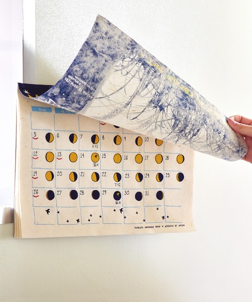 Nepalese Handmade Paper 定番人気!ロングセラーデザイン★THE PHASE OF THE MOON 毎年大人気!新月・上弦・満月・下弦など…毎日移り変わる、月の満ち欠けが分かるムーンカレンダー2025年版。 毎日チェックして空を見上げてみて…★* ネパール製の手漉き紙を使用した、ハンドメイドならでの温かみや風合いが感じられるデザインです。 1ページ1ヶ月の12枚綴り。表紙+12ページ。 ※祝日および祝日名は、法改正により変更となる場合があります。 ※こちらの商品は1点1点職人による手作り・ハンドメイドとなります。その為、形や色合い・模様など若干異なる場合がございます。(紐の色は1点1点異なります。)あらかじめご了承ください。 Amina Collection Co.,LTD.