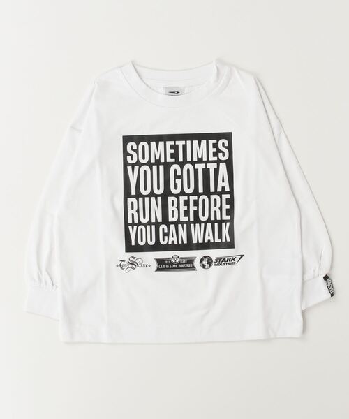 グラフィックロングTシャツ BOXアイアンマンの劇中での名セリフをあしらったロングTシャツ。BOXロゴのメッセージTシャツとして、1枚でもミドラーとしても大活躍。クールな印象で、どんなボトムスにも合わせやすくなっています。