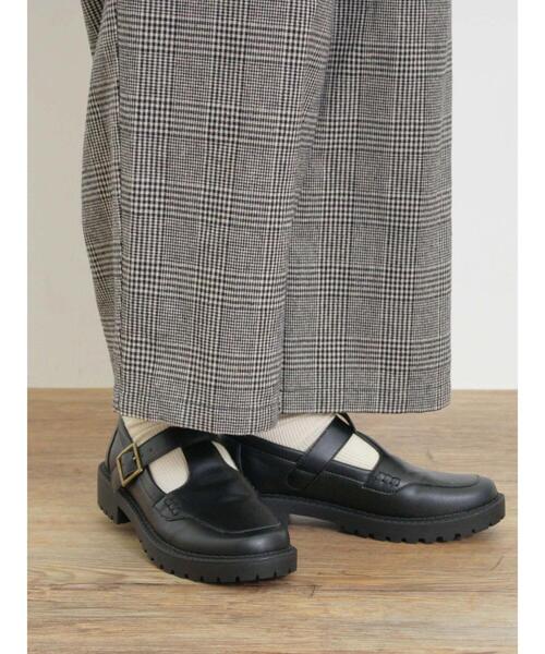 アンティークライクなスクエアバックルがポイントになったTストラップシューズ。 ゴツめのソールが足元にメリハリ感をプラス。 ストラップはスナップボタン仕様で脱ぎ履きもスムーズにすることができます。 カジュアルさと上品さを兼ね備えたデザインで、様々なコーデにもマッチしてくれる1足です。 ※商品画像は、撮影環境やお客様のご利用のPC・スマートフォンのモニター環境などにより実物と色味に差異がある場合がございます。