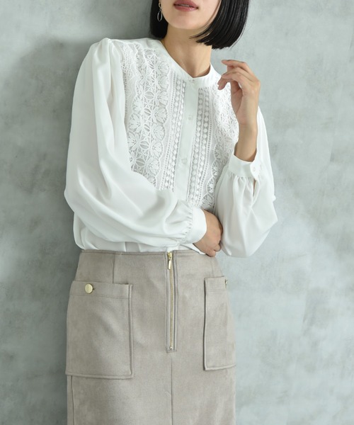 上品なレースが目を惹くブラウス胸元にレースを使用し、華やかな印象に演出してくれるお勧めなブラウス。コンパクトなバンドカラーがすっきりとした印象に見せてくれ、程よくゆるさのあるサイズ感で女性らしさを引き立ててくれます。レースを使用しながら甘さを抑えた大人っぽい着こなしも◎1ランクアップした大人のスタイルを完成させてくれる優秀なアイテムです。通勤シーンはもちろん、デイリーの羽織をしても活躍する万能なアイテム。パンツスタイル・スカートスタイルどちらとも相性のいいアイテムは、1枚あるととても便利です。■取扱いご自宅でイージーケア(手洗い)ができます。INTERPLANET/actuel(インタープラネット/アクチュエル)■conceptいつだって私らしく、私自身のスタイルが決まる。。。時代や年齢に媚びない『らしさ』を纏って生きる女性へ。旬なベーシックと抜け感のあるカジュアルをMIX。そんな大人カジュアルコーデを提案します。■お気に入りの登録についてショップ・ブランドのお気に入り登録でクーポンやタイムセールの通知などお得な情報を受け取ることができます♪また、気になるアイテムのお気に入り登録でセールや再入荷の通知など受け取ることができます。