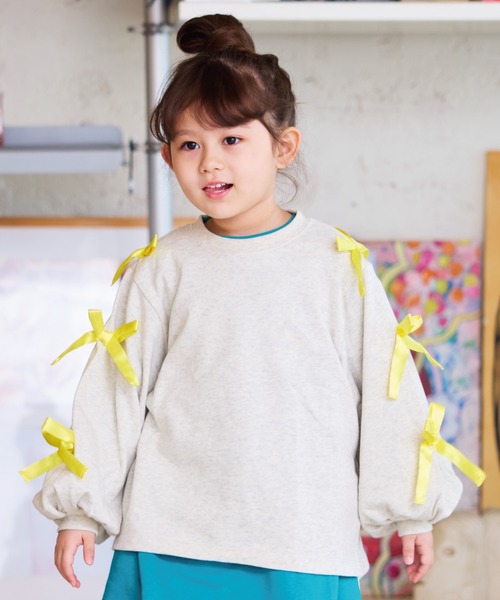 【CALMiA】ショルダー部分のリボンが印象的♪とってもガーリなスウェット■デザイン袖部分の3つの配色リボンが目を引きます。ツルっとした光沢感のあるリボンなので存在感◎縫い付けられているのでほどけることなくご着用頂けます。ダボっとしたワイドシルエットで、ゆったりした着心地。アームホールが広く、袖口はたっぷりギャザーでふんわりした仕様に。サイドにはスリットが入っていて、後ろ身頃が少しだけ長くなっています。■スタイリング1枚でガーリーコーデに仕上がる主役級トップス。あえてデニムなどカジュアルなボトムスも◎ハイネックやシャツをレイヤードして長いシーズンお楽しみ頂けます。■生地感肌触りバツグンのコットン100%。内側はパイル生地でサラッとしています。トレーナーとしては少しライトな生地感。++++++++++++++++++++++++透け感:なし伸縮性:あり生地の厚み:少し薄手裏地:なし++++++++++++++++++++++++■リンクコーデアイテムおとな・ショルダーリボンスウェット:0040442002■モデル着用アイテム・刺繍デニムスカート:0000842002・プリントBIGワンピース:0130942001■商品タグのカラー表記オフホワイト→オフホワイト杢※モデルが着用している画像は、照明や日光などの撮影時の環境により実物と異なる色味になる場合がございます。商品単体の平置き画像を実物に近いお色味になるよう努めておりますので、お色味のご確認は平置き画像をご参照くださいませ。※お使いのモニター環境によっても実物のお色味と異なって見える場合がございます。予めご理解の程よろしくお願いいたします。――― CALMiA/カルミア ―――マーキーズが提案するオンナノコ心をくすぐるディティールが特徴のブランド。ガーリーカジュアルスタイルを提案します。