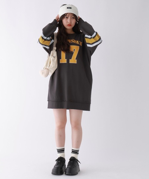 ーーー ◆デザイン スポーティー見えするワンピース。 フロントのナンバリングロゴがトレンド感のあるデザインに。 ロゴはメッシュ素材でオシャレ見え。 お袖のラインは広めで目を惹くポイント! お袖、裾はリブ仕様の安心デザインです。 ◆素材 薄手のスウェット素材。 ーーー ◆スタイリング 足元にボリューム感を出すのがおすすめ。 ルーズソックス×スニーカーや、厚底ブーツ合わせが◎ ボトムに細めパンツやロングスカートを合わてもオシャレスタイルに。 S 140~150cm M 150~160cm L 160cm~ ※撮影環境によりカラーが異なって見える場合があります。あらかじめご了承ください。 ▶▶INFORMATION◀◀ ■商品のお気に入り登録(♡マークをクリック!) 完売カラーの再入荷通知やお得なタイムセール通知などを受け取ることができます♪ ■ブランドのお気に入り登録 新商品や再入荷など、ブランドからのおトクな情報を受け取ることができます♪ あわせてぜひご登録ください!