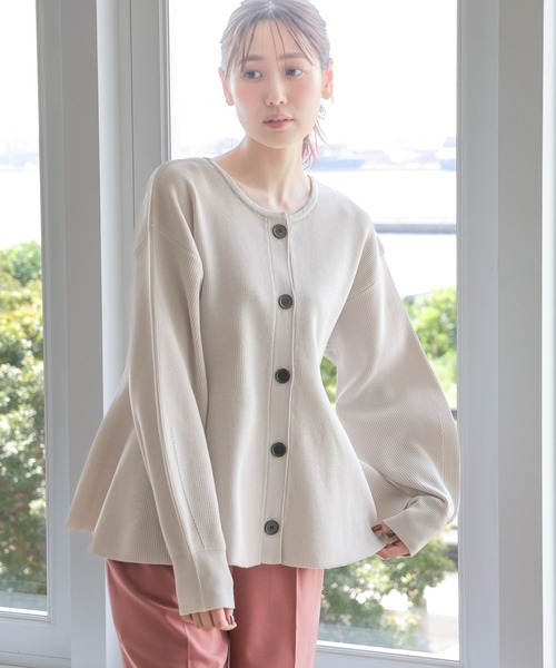 軽い着心地とクリアな表面感のリッチライトニット ・機能/素材 軽量 マシンウォッシャブル アンチピリング 軽くて膨らみがある素材 ・デザイン ふわっと軽くスポンデッシュな素材を使用し、着心地も軽やかなカーディガン。 ボタンを留めてプルオーバーとしても着用可能。 ペプラムデザインが華やかです。 高めのウエスト位置と立体的なシルエットでスタイルUP可能。 少し長めの着丈で、気になる腰まわりもしっかりカバーしてくれます。 ・お勧めスタイリング すっきりシルエットのパンツやIラインスカートと合わせて、ペプラムシルエットを生かしたスタイリングがおススメ。 ----------------------------- 裏地: なし 透け感: やや透ける(ライトグレーで計測しています) 伸縮性: あり(ライトグレーで計測しています) 生地感・厚さ: 普通(ライトグレーで計測しています) ----------------------------- 【お買い物が便利になる機能がたくさん!】 ▼商品のお気に入り登録▼ 完売アイテムの再入荷通知、ラスト1点、またクーポンやお値下げ通知をお知らせします。 ▼ブランドのお気に入り登録▼ 新商品や再入荷のお知らせ等、いち早くブランドのお得な情報を受け取ることができます。 ぜひご登録ください。