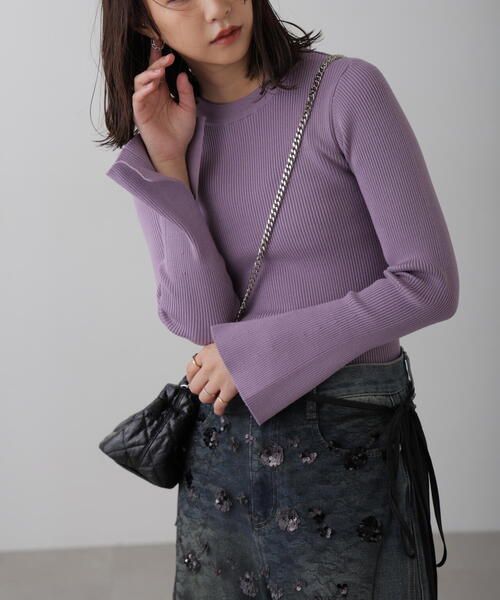 〔fabric&design〕 〈洗える〉マシンウォッシャブル対応のニットシリーズ。 レーヨン・ポリエステル・ナイロンの三者混糸を使用しており、目面が綺麗でありながら、型崩れしにくく、またニットが伸びにくい特徴があります。 型はベーシックに使い回しが効きながら、袖をフレアにすることで今っぽさをプラス。 ※お洗濯の際は弱水流モードをお選びいただき、ネットに入れてお洗濯ください。 〔styling〕 一枚着としてはもちろん、キャミワンピースやジャンパースカートのインナーとしても活躍してくれます。 ■透け感:なし ■生地の厚さ:普通 ■裏地:なし ■伸縮性:あり ■光沢:なし ■シルエット:スタンダード --------------------------------------------------- ◆商品のお気に入り登録◆ お気に入りアイテムの値下げ・再入荷・在庫1点などの通知を受け取ることができます。 ◆ブランドのお気に入り登録◆ 新商品や再入荷、セール、クーポン配布などお得な情報を受け取ることができます。 ---------------------------------------------------
