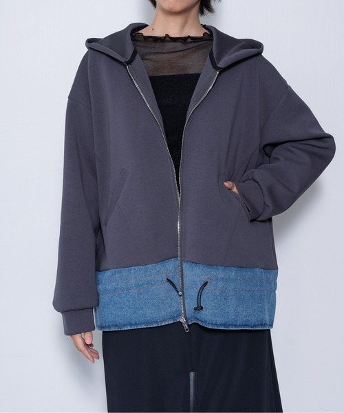 テロっとした中肉厚のボンティングスウェット生地を使用。ハリ感があり毛玉にもなりづらく、ストレッチも効いたストレスフリーな一着です。裾にはデニムをドッキング。ドローコードも配備されておりウエスト位置の調節が可能です。サイジングも大きく設定されていて、スカートやパンツスタイルと幅広くスタイリングいただけます。★商品のお気に入り登録 完売していても再入荷時に再入荷通知を受け取ることができますので、是非ご登録ください☆ ★ブランドのお気に入り登録 新商品や再入荷などの情報を受け取ることができますので、是非ご登録ください☆ ※画像の商品は光の反射や角度により、実物と色味が異なる場合がございます。 また、表示のサイズ感と実物は若干異なる場合もございますので、予めご了承ください。 ※着用、お取り扱いの際は、商品についている品質表示とアテンションタグを必ずご確認ください。