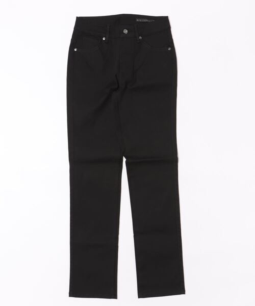 細番手の糸を緻密に織った高密度な二重織ストレッチ素材。\nストレッチ性に優れていますが、しっかりとしたハリ感がある素材です。\n少し硬さを感じるかもしれませんが、その、しっかりとしたハリ感が、体のラインが出るのを抑え、スッキリとカバーしてくれます。\n\n太過ぎず細過ぎず、スソ幅はスッキリさせった、ミセスジーナのレギュラーストレートシルエット。どなたでもスッキリ見せてくれるベストセラーシルエットです。\n\n【Mrs.Jeanaキレイのひみつ】\nミセスの体形を研究し、ウエスト、ヒップ、脚のサイズバランスを計算し、シャープでスマートに見せてくれるシルエットを追及しています。\n\n気になるウエストを窮屈感なく包み込み、穿いている方がウエストまわりすっきりに見せてくれる、丁度いい深さに設定された安心股上。\n\n肌触りや穿き心地のよい素材開発や素材選びをしています。\nまた、素材特性に応じて、少しだけパターンを変えたり、生地のボリュームを調整したり、そんなこだわりもシャープでスマート見せてくれる理由です。