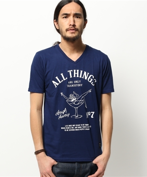 少しかすれたようなタッチのプリントで古着っぽく着こなせる半袖Tシャツ。 すっきり見えるVネックはレイヤードにもおすすめですよ♪ Tシャツをメインで着ることが多くなる今の季節、一枚で様になるプリント柄はいくつあっても困らない! 色味もモノトーンで合わせやすいので秋口のシャツのインナーにもぴったりですよ♪