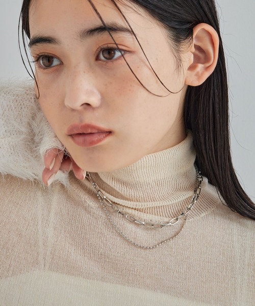 ダイヤレーンで華やかさをプラス。◆2024-25秋冬◆【デザイン・シルエット】顔周りをきらびやかに飾るネックレス。2連のデザインなので着けるだけでキマります◎華奢目なダイヤレーンを採用することで上品に輝いてくれます。【カラー】ゴールドとシルバーの2色展開。【おすすめのスタイリング】ハイゲージニットや首回りが開いたトップスと合わせて頂くのがおすすめです。