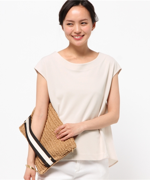 トリアセテート素材のトップス。 トリアセテートとはシルクのような柔らかさと合成繊維の機能性を併せ持った生地で、 カジュアルになり過ぎない、シックなカットソーに仕上げました。 わき別布が女らしさをプラスしてくれます。