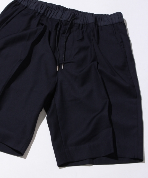 肌触りの良いレーヨン混素材で仕立てたショーツです。 ウエスト部分にタックを入れたほか、ゴムとドローコードを仕込み、よりリラックスした雰囲気に仕上げました。 キレイで上品なスタイリングにはもちろん、Tシャツなどと合わせてカジュアルに着こなすのも◎。 夏の主役として、大活躍間違い無しの逸品です。