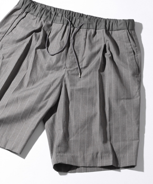 レーヨン混の柔らかなボディに、控えめな柄をオンしたショーツです。 落ち感のある上品な素材と相まって、大人っぽい落ち着いた印象に仕上がりました。 キレイ目なアイテムとの相性はもちろん、粗野なリネンシャツなどと合わせてテイストの違いを楽しむのも◎。 ウエスト部分にはタックが入っているので、ゆったりとしたリラックス感のある着こなしもオススメです。 様々なスタイリングに取り入れて、夏場のファッションをお楽しみください。