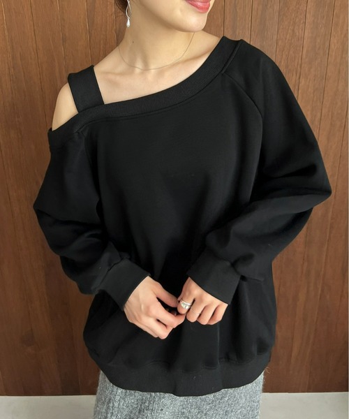 【ショルダーデザインがアクセントなスウェット】 1枚で抜け感のあるスタイリングに仕上げてくれるスウェット。 ワンショルダーの肩のデザインがアクセントになっており、コーデの主役になってくれます。 ややゆったりとしたデザインなので パンツと合わせてカジュアルなスタイリングがもちろん、 スカートと合わせて可愛さをプラスしたスタイルもおすすめです。 秋冬はもちろん、春まで着ることができるのも嬉しいポイントです。 ---------------------------- 伸縮性 ややあり 裏地 なし 透け感 なし ---------------------------