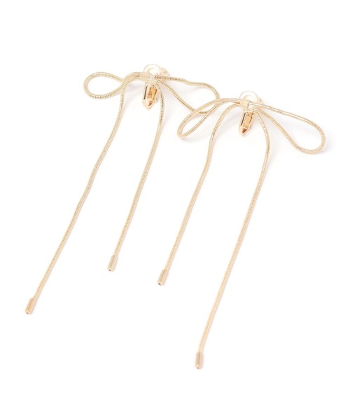 リボンモチーフのイヤリング。スネークチェーンが甘くなりすぎず、カジュアルにもお使いいただけるアイテムです。
