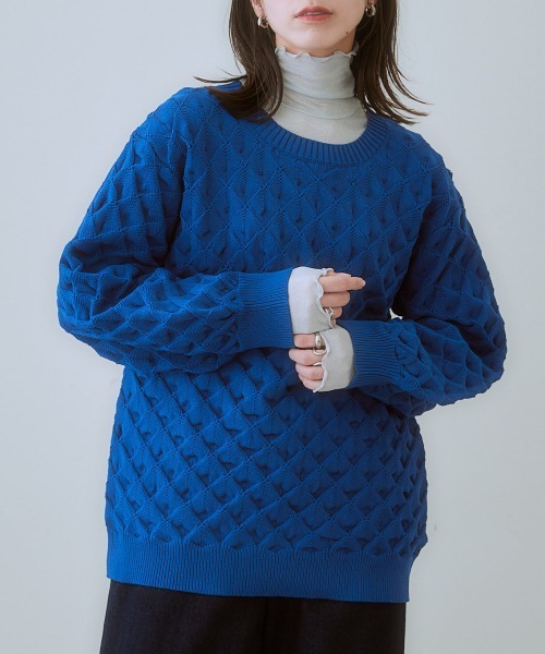 ポコポコとした立体的な編み地がコーディネートの主役になるゆったりニット。 ■デザイン ゆったりとしたオーバーサイズなので、体型カバーにもぴったりな鮮やかカラーニット。ポコポコとした立体的な編み地が、可愛らしさとおしゃれ感をプラスしてくれます。 ■素材 お手入れのしやすいポリエステルニットを採用しており、ご家庭でも洗濯いただけます。 ■おすすめのスタイリング デニムと合わせてカジュアルに着こなすのがおすすめです。 また、スカートと合わせてフェミニンに着こなすこともできます。 さらに、レギンスと合わせてスポーティーに着こなすこともできます。 <仕様> ポリエステル100%(ニット) <洗濯方法> 洗濯機OK ネット使用 ■キーワード 30代、40代、50代、60代、アラサー、アラフォー、たいけいかばー、かわいい、カワイイ、お洒落、日常着、普段着、日常使い、毎日、秋、イベント、マストバイ、、レディース、ファッション、トップス、ニット、セーター