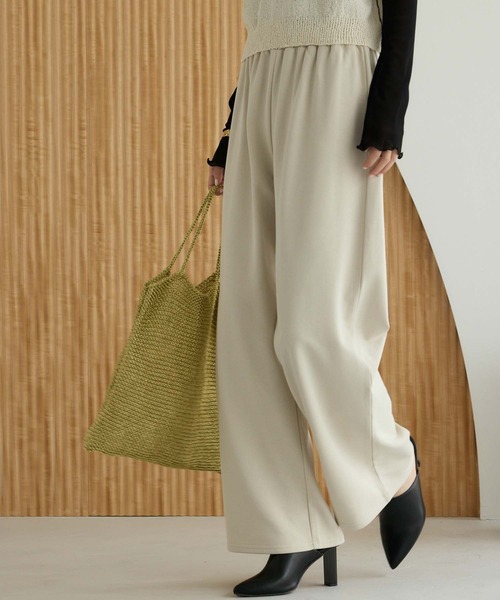 ワイドなシルエットでリラクシングなスウェットパンツ ゆったりとしたワイドなシルエットが魅力のスウェットパンツ。柔らかな素材感と、ウエストはゴム仕様でリラックス感のある穿き心地も嬉しいポイントです。シンプルなデザインで合わせるトップスを選ばず、幅広いスタイリングに活躍するアイテムです。 ------------------ 透け感:ややあり 生地の厚さ:普通 裏地:なし 伸縮性:ややあり ------------------ ▼ATTENTION▼ ※摩擦や汗、雨等で濡れた場合、他の衣料に色移りする場合がございますのでご注意下さい。 ※撮影時のライティング、PCやスマートフォンの環境により写真の色味が実際の商品と異なって見える場合がございます。ご了承の上お買い求め下さいませ。 ※モデル着用画像は実際の色と多少異なる場合がございますのでマネキン画像をご確認ください。 ※製造過程や素材により染料等の臭いが強い場合がございます。臭いが気になる場合は一度陰干しされてからご使用下さい。 ※着用衣装はすべて参考商品です。 ―――――――――― 《お買い物をもっと楽しむために!》 ■商品のお気に入り登録 お気に入りの商品やカラーを登録していただくと 値下げ・在庫1点・完売後の再入荷などの通知を随時受け取ることができます。 ■ブランドのお気に入り登録 新商品の発売や再入荷、セール、クーポン配布など EditSheenのお得な情報を受け取ることができます。