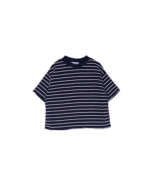 - 밧줄 모양이 돋보이는 푹신한 느낌의 폴리 원단으로 제작된 스트라이프 티셔츠 입니다.- 크롭 기장이며, 적당한 핏감으로 편하게 착용이 가능합니다.