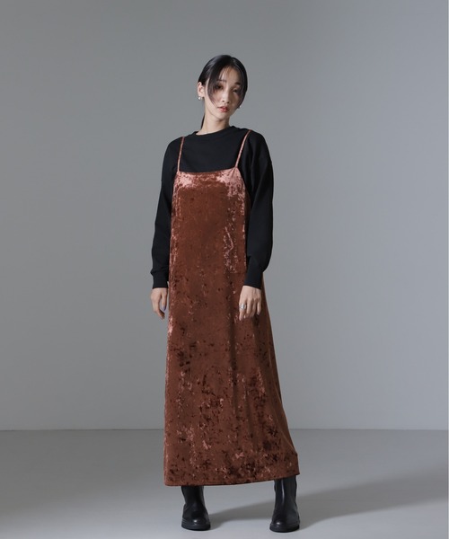 【2024 AW】NANO universe(ナノ・ユニバース)『今年顔が手に入るベロア素材』光沢感が目を惹くクラッシュベロアを使用したキャミソールワンピース。Iラインのシンプルなデザインなので、インナーにカットソーやニットを着やすくレイヤードしやすいアイテムです。■デザイン・シンプルで着回しが効くIラインシルエット・華奢なキャミの肩紐はサイズ調整可能・秋冬のレイヤードがサマになるデザイン・後ろ姿にさりげなく魅力を加えてくれるバッグスリット入り■素材・程良い肉感と、柔らかさをもつベロアカット素材・光沢感のある起毛素材で、伸縮性があり、表面がクラッシュ加工されたベロア生地・洗濯機使用可■カラー展開・着回しが万能なブラック、秋冬らしい雰囲気のブラウン、ベージュの3色展開■コーディネート・ニットやカーディガンを羽織ったり、パンツとのレイヤードスタイルにも◎・同素材のパンツとのレイヤードもおすすめ■シリーズ・673-4227313 ベロアイージーワイドパンツ(セットアップ可)■取扱方法ネットを使用してください。単独洗いをして下さい。濡れたままの放置や、長時間の浸漬はしないで下さい。洗濯後は形を整えて直ちに干してください。摩擦により、素材表面が白っぽくなったり、毛羽立ちが発生したりします。着用中の摩擦や洗濯により、毛羽立ちや毛玉(ピル)が生じる事がありますので、お取扱いにはご注意ください。※サンプルにて撮影、採寸を行う為、実際にお届けする商品と仕様やサイズが異なる場合がございます。予約時は生産の都合上、お届け予定時期が前後する場合もございますので、予めご了承下さい。※光の当たり具合や撮影環境により色味が異なる場合がございます。正しい色味はスタジオ画像の色味をご参照ください。※こちらの商品は、アウトレット店舗での取り扱いになります。直接店舗へお問い合わせの際はアウトレット店舗へお願い致します。プロパー店舗での取り扱いはございませんので、ご了承ください。▼商品のお気に入り登録お気に入りアイテムの再入荷や残り1点の通知を受け取ることができます。▼ブランドのお気に入り登録新作アイテムの入荷や人気アイテムの再入荷、タイムセールやクーポンなど、いち早くブランドのお得な情報を受け取ることができます。