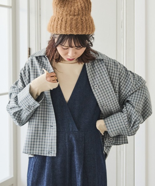 今季一押しのチェックシリーズのシャツジャケット。 甘くなり過ぎない細かなチェック柄で大人ナチュラルな秋冬コーデが叶います。 さらっと羽織れるシャツデザインで様々な着こなしが楽しめる1枚。 ゆったりとしたルーズなシルエットがこなれ感があり魅力的。 裾幅は広めにし、中に着込めるようにしています。 同シリーズのスカート、パンツ、ジャンパースカートとの統一感のあるセットアップでの着こなしはもちろん、 デニムやワークパンツとのカジュアルなスタイリングやロングスカートを合わせて女性らしさをプラスするのも◎ 総柄のアイテムなので無地のボトムスとも相性抜群です。 胸ポケットがさり気ないポイントに。 袖のボタンを取り外して袖を捲った抜け感のある着こなしも楽しめます。 シワになりにくく落ち感のある生地。 さらっとした肌触りでしっかりとした素材感です。 - - - - - - - - - - - - - - - - - - - - - - - - - - - - - - - - - 透け感:なし 裏地:なし 伸縮性:なし 光沢感:なし - - - - - - - - - - - - - - - - - - - - - - - - - - - - - - - - - ※ サンプル商品で撮影をしております。生産時の生地のロット違いによる色の差が生じる場合もございます。不良品ではございませんのでご了承くださいませ。 ご不安のある方、ご理解いただけない方に関しましては、大変心苦しい限りではございますがご購入をご遠慮いただけますようお願いいたします。 秋服/冬服/セットアップ対応/チェックシリーズ