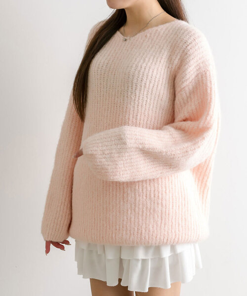 後ろリボンで後ろ姿まで可愛く着れるニットチュニック■デザイン・暖かみのあるカラーで秋冬のシーズンムードを高めるニット。・前後Vネックで首回りはすっきり着れて、リボンで開き具合を調節ができるようになってます。・ふわふわの触り心地でチクチクしないので、素肌にも着やすいです。・ドロップショルダーなので肩幅を拾いすぎず、華奢見えが叶います。■カラー・アイボリー/ピンク/ブラウン/チャコールの4色展開■スタイリング・ミニボトムを合わせてミニワンピ風に着るのがおすすめ。・足元はロングブーツ、ハイソックスにムートンブーツやスニーカーなど幅広く合わせやすいです。・ロングボトムとの相性もいいので、足を出したくない方はデニムやロングスカートと合わせるのがおすすめです。-----------------------------裏地:なし光沢感:なし透け感:ややあり伸縮性:あり手洗い:可能タンブラー乾燥:不可アイロン:110℃まで-----------------------------model:161cmお取り扱い上の注意※キャンペーンやフェアにより価格が変動する場合がございます。※サンプルで撮影している為、実際の商品と若干仕様が異なる場合がございます。※着用、お取り扱いの際は、商品についている品質表示とアテンションタグを必ずご確認下さい。※ご覧のモニター環境や撮影環境により実際の商品と多少色味が異なって見える場合がございます。ご理解の程よろしくお願いいたします。≪返品・交換について≫・着用後、洗濯後の返品・交換は致しかねます。・商品到着後、着用前に商品状態のご確認をお願い致します。