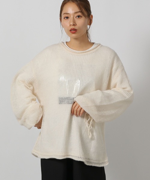 袖部分にシャーリングデザインを施したニット。身幅にゆとりもあるので程よいルーズ感が楽しめる1枚です。細めの糸でざっくりとした編地なので透け感があり、ニットでも重たくならないのもポイントです。【素材】モヘアのようなふわっとした柔らかさのある素材感。【スタイリング】オーバーシルエットなのでナロースカートとの相性〇カジュアルなデニム合わせもおすすめです。