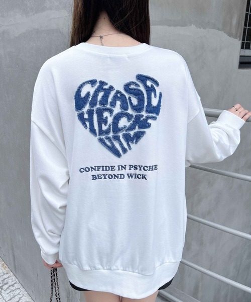 バックにあしらった大きなデニムのハートロゴがキュート&カジュアルなスウェットトップス。 ボディラインを拾わないビッグなシルエットでラフコーデが完成します。 フロントは胸元のロゴのみでシンプルに。 袖口はリブになっているのでブラウジングも可能です。 パンツを合わせた着こなしはもちろん、ふんわりスカートを合わせたミックススタイルも◎。 【以下オートミール参考。カラーにより多少の誤差あり】 ・透け感:やや透ける ・伸縮性:あり ・生地の厚さ:普通 ・裏地:なし